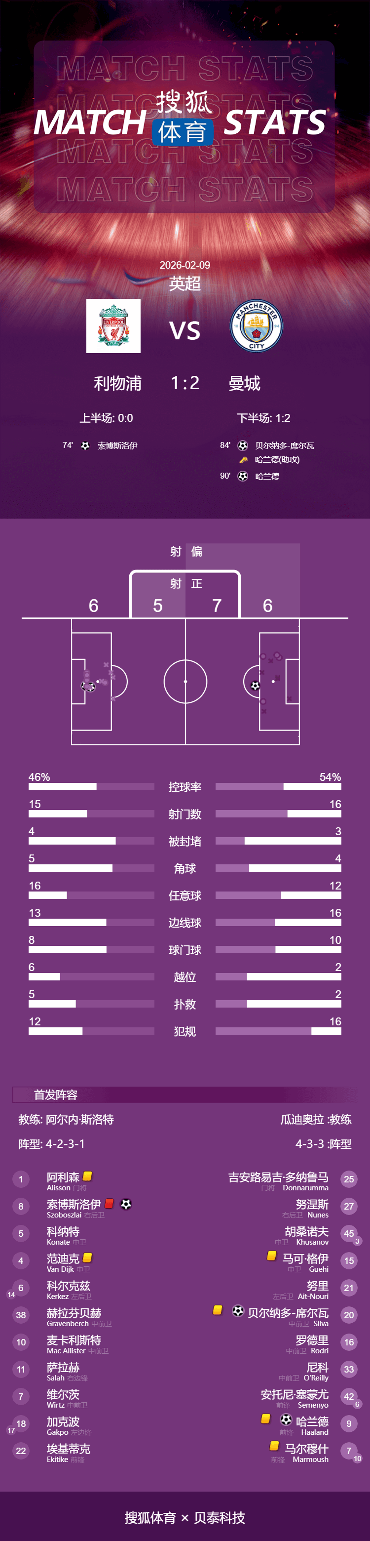 英超-索博世界波+染红哈兰德传射+点球绝杀 利物浦1-2曼城